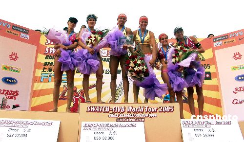 5月21日下午結(jié)束的Swatch-FIVB世界沙灘排球巡回賽首戰(zhàn)上海站的比賽中,巴西選手憑借嫻熟的技藝,包攬本屆比賽女子項(xiàng)目的前三名,無愧排球強(qiáng)國(guó)的稱號(hào)。作者:李佳佳