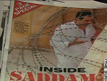 中新網(wǎng)5月22日電 《太陽(yáng)報(bào)》最新刊出的薩達(dá)姆“監(jiān)獄生活照”是一幅大彩照,薩達(dá)姆身著白色長(zhǎng)袍站在蛇形鐵絲網(wǎng)后面,手掌張開(kāi)頭微低,像是在做禱告,也有人將其解讀為正在散步,并且同什么人在交談。(春風(fēng))