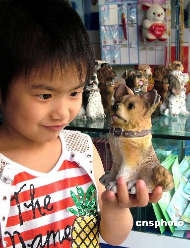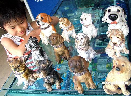 5月23日,一個小朋友在重慶市榮昌縣某旅游產(chǎn)品商店選購樹脂材料制作的小動物玩具!傲弧钡絹砬埃瑯渲皩櫸铩庇捎谠煨透鳟、體態(tài)輕巧且色澤分明,受到小朋友們的喜愛。作者:朱蕓鋒