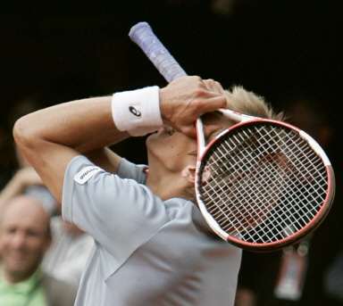 中新網(wǎng)4月25日電 在昨天晚上結(jié)束的法網(wǎng)男單下半?yún)^(qū)首輪比賽中,美國老將阿加西苦戰(zhàn)5盤,以2比3(5比7/6比4/7比6/1比6/0比6)不敵芬蘭的資格賽選手涅米寧,慘遭淘汰出局。江南時報報道,這也是阿加西連續(xù)兩年在法網(wǎng)首輪出局。
