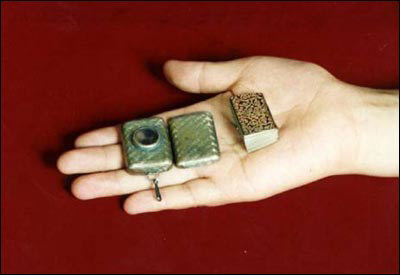 記者就媒體報(bào)道中提到的保存有世界上最小的《古蘭經(jīng)》的新疆老人,專程趕赴南疆的庫(kù)爾勒市進(jìn)行了采訪。經(jīng)實(shí)測(cè),這位名叫王成的老人保存的袖珍《古蘭經(jīng)》長(zhǎng)2.7厘米,寬1.3厘米,厚1厘米,重量只有4.6克,比國(guó)際公認(rèn)由阿拉伯人貝賈亞發(fā)現(xiàn)的《古蘭經(jīng)》輕0.6克。此外,經(jīng)阿拉伯語(yǔ)專家鑒定,此書(shū)為《古蘭經(jīng)》全集,全書(shū)共分30卷,計(jì)6236節(jié),共有詞匯77934條,字母323621個(gè),經(jīng)書(shū)的封面用燙金硬皮紙做成,上面印刷有伊斯蘭風(fēng)情圖案。它珍藏在一個(gè)僅比拇指稍大的鍍金的小盒中,盒蓋中央有一個(gè)約1厘米的放大鏡,供翻閱時(shí)使用。盒上的小鐵環(huán)用絲帶穿連起來(lái),以便攜帶和保護(hù)。鐵盒上壓制有精美的阿拉伯民族花紋,使這個(gè)小盒子也成為頗具欣賞價(jià)值的藝術(shù)品。經(jīng)書(shū)的封面用燙金硬皮紙做成,上面印刷有伊斯蘭風(fēng)情圖案。