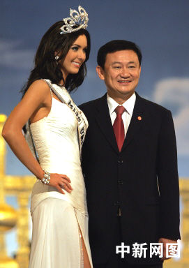 圖:2005環(huán)球小姐冠軍與泰國(guó)總理他信合影
