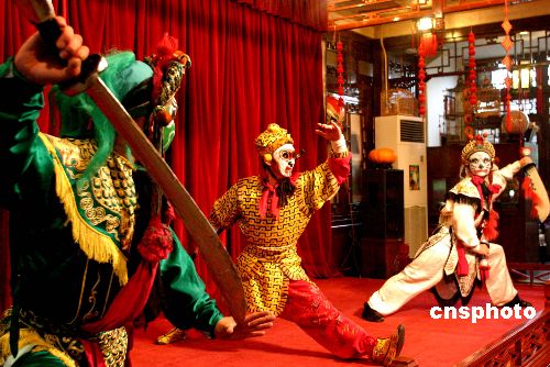 圖:老舍茶館上演京劇《西游記》受到老戲迷歡迎