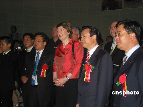 新西蘭總理海蓮·克拉克一行四日上午來(lái)到愛(ài)知世博會(huì)中國(guó)館參觀,并興致勃勃地為當(dāng)天在這里開(kāi)幕的海南周剪彩。圖為克拉克(右三)在海南省副省長(zhǎng)陳成(右二)、中國(guó)館館長(zhǎng)孫鋼(右四)的陪同下饒有興趣地參觀了當(dāng)天洋溢著濃郁熱帶風(fēng)情的中國(guó)館。作者:王健