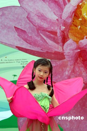六月四日,“第五屆澳門(mén)荷花節(jié)”在“龍環(huán)葡韻”揭幕,千姿百態(tài)的各種荷花吸引?多游人,小朋友在揭幕式上表演助興。作者:梁永強(qiáng)