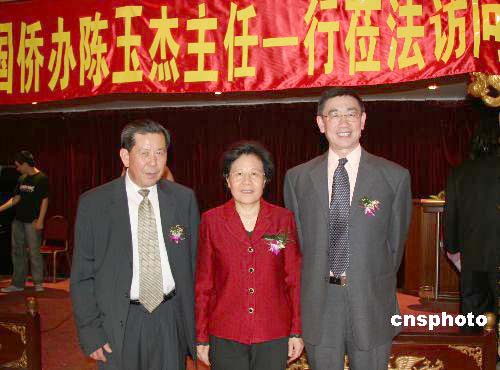 當?shù)貢r間6月9日,法國各界僑團在巴黎新世界中國城舉行盛大歡迎儀式,歡迎國務院僑辦主任陳玉杰一行訪問法國。圖為陳玉杰(中)同中國駐法大使趙進軍(右一)和法國華僑華人會主席林德彪在一起。作者:鐘誠
