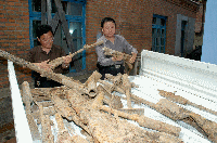 蛟河市公安局和文物管理所接到報(bào)案后先后趕到現(xiàn)場(chǎng)。經(jīng)初步清理,共出土武器三十二件,其中包括六挺重機(jī)槍、九挺輕機(jī)槍、一支“三八”步槍、九件炮彈發(fā)射器、槍把兩個(gè)、槍托兩個(gè)、日本軍刺三把,以及五百余發(fā)子彈。公安局治安大隊(duì)周經(jīng)倫大隊(duì)長(zhǎng)說(shuō),初步確定這是日軍侵華期間遺留的武器,因銹蝕嚴(yán)重已經(jīng)不具有殺傷力。