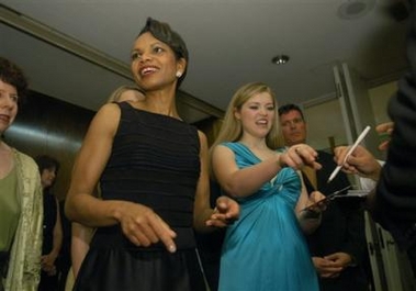 中新網(wǎng)6月11日電 據(jù)美聯(lián)社報道,很久之前擁有“鋼琴師”身份的美國國務(wù)卿賴斯,10日鮮見地登上了華盛頓肯尼迪中心的舞臺,為一名身患重病的年輕女高音演員伴奏。