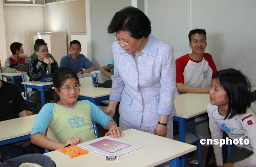 中國(guó)國(guó)務(wù)院僑辦主任陳玉杰一行當(dāng)?shù)貢r(shí)間六月十二日來(lái)到《歐洲時(shí)報(bào)》主辦的中文學(xué)校參觀。圖為陳主任在與中文班的學(xué)生交談。作者:鐘誠(chéng)