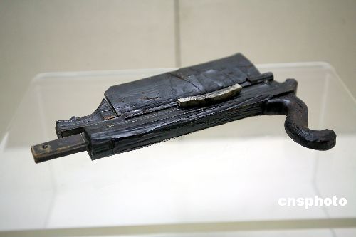 圖為湖北荊州博物館內(nèi)最古老的“手槍”--弩機(jī)