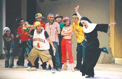 很多人都對黑人女星烏比·戈德堡主演的喜劇電影《修女也瘋狂》記憶猶新,《跑路救天使》即改編自此片。該劇在2004年由臺灣果陀劇場推出,當(dāng)時曾創(chuàng)下連演31場場場爆滿的記錄,很多場次中謝幕時間竟長達(dá)30分鐘。而果陀劇場也是臺灣戲劇界的重要組成部分,它一直致力于“中文歌舞劇”的演出,獲得過多項表演大獎,被業(yè)內(nèi)人士稱為“東方百老匯”。有意思的是該劇中還使用了很多觀眾耳熟能詳?shù)牧餍懈枨,像《讀你》、王菲的《我愿意》、張惠妹的《姐妹》、劉文正的《誰在眨眼睛》等等,而且風(fēng)格與我們熟悉的曲調(diào)有了很大改變,像《讀你》就被唱出了“圣歌”的味道。