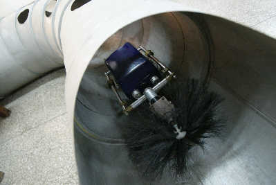 另外,相對于200mm以下矩形管道的國際水平,新研制的機器人可用于高度150mm以下的矩形管道和直徑250mm以上的圓形管道,適用于小口徑管道檢測、空調管道清洗消毒。而且能跨越管內的階梯管、錐形管接口、變截面形狀管接口,輕松實現(xiàn)直角方管轉向和90度圓弧彎管行走,勝任任何復雜的管道環(huán)境系統(tǒng)。