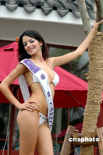 六月二十二日,參加國際旅游小姐最佳民族服裝冠軍大賽的七十五位佳麗在“中國第一水鄉(xiāng)”古鎮(zhèn)周莊奉獻(xiàn)了一場比基尼泳裝秀,盡情展示她們大膽、外向的美麗。作者:蔣振江