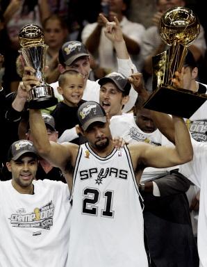 中新網(wǎng)6月24日電 北京時間今天上午,NBA總決賽第七場比賽在小城圣安東尼奧進(jìn)行。主場作戰(zhàn)的西部冠軍圣安東尼奧馬刺隊在最后一節(jié)后來居上,以81比74擊敗東部冠軍活塞隊,時隔一年后再次登上NBA總冠軍的寶座。