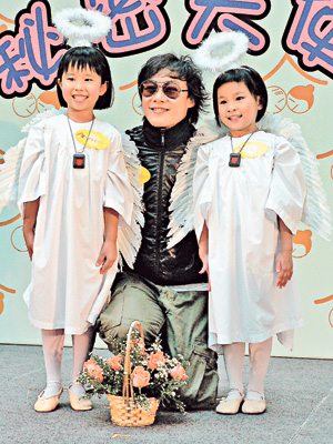 中新網(wǎng)6月27日電 據(jù)香港《大公報(bào)》報(bào)道,陳奕迅(Eason)和鄧麗欣(Stephy)聯(lián)同多位歌手昨日一同支持『秘密天使』助老計(jì)劃活動(dòng)。席間Eason與一眾班長(zhǎng)者和小朋友們示范體操,又得到兩名小天使向他獻(xiàn)花,可能已為人父,看到小朋友特別開(kāi)心,他忍不住要求兩位小天使向他拋飛吻。