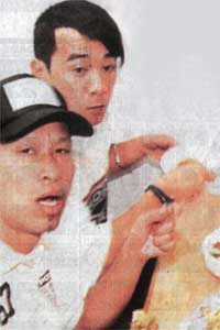 當(dāng)時,記者上前拍照,婉婉立即低頭,小春見狀即喝罵:“不要拍呀!”繼而便拿起前面的粿條潑向記者,記者離開該店后,婉婉立即與小春耳語一番,似是勸他不要動怒,半小時后,眾人分別離開。