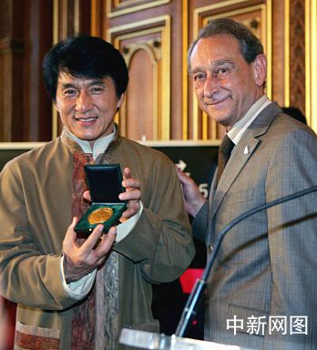 中新網(wǎng)6月29日電 據(jù)光華日報報道,法國巴黎市長德拉諾今天在市政廳頒與成龍巴黎市榮譽勛章,表彰這位香港動作巨星的演藝成就及他的笑容。