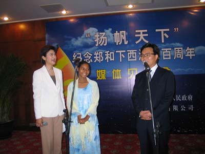 去年8月8日,由鳳凰衛(wèi)視的四位隊(duì)員駕駛的鳳凰號(hào)單桅帆船啟程,沿著鄭和寶船的路線去探尋鄭和的足跡。他們于今年3月16日抵達(dá)鄭和船隊(duì)的終點(diǎn)—肯尼亞,并在當(dāng)?shù)氐奶皆L中,發(fā)現(xiàn)了鄭和船隊(duì)水手的后裔、18歲的烏瓦瑪卡•沙里夫,并對(duì)她的家庭進(jìn)行了追訪和報(bào)道。