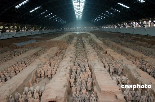 “奇器珍怪徙藏滿之”一語出自司馬遷筆下!妒酚洝访魑挠涊d的有“金雁”、“珠玉”、“翡翠”等。八十年代末考古工作者在地宮西側發(fā)掘出土了一組大型彩繪銅車馬。車馬造型之準確,裝飾之精美舉世罕見。之前,考古工作者還發(fā)掘出土了一組木車馬,除車馬、御官俑為木質(zhì)外,其余車馬飾件均為金、銀、銅鑄造而成。地宮外側居然珍藏了如此之精美的隨葬品,那么,地宮內(nèi)隨葬品之豐富、藏品之精致是可想而知的。