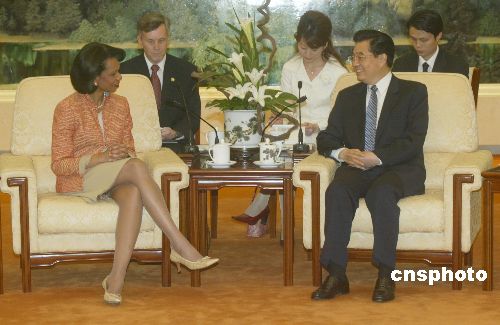 中新社北京七月十日電(記者李靜)中國(guó)國(guó)家主席胡錦濤十日會(huì)見(jiàn)美國(guó)國(guó)務(wù)卿賴斯時(shí)表示,相信賴斯此次訪華將有助于雙方加強(qiáng)溝通,增進(jìn)理解,促進(jìn)合作,有助于促進(jìn)中美關(guān)系健康穩(wěn)定地向前發(fā)展。