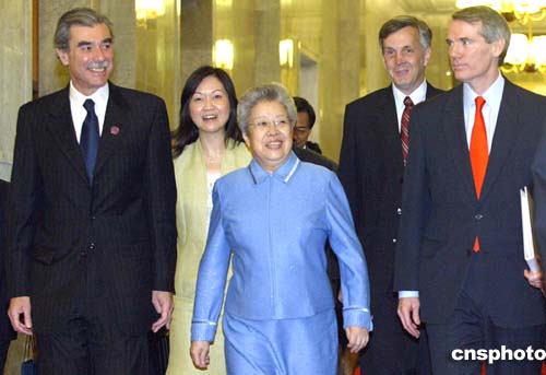 中國(guó)國(guó)務(wù)院副總理吳儀與美國(guó)商務(wù)部長(zhǎng)古鐵雷斯進(jìn)行會(huì)談。作者:廖文靜