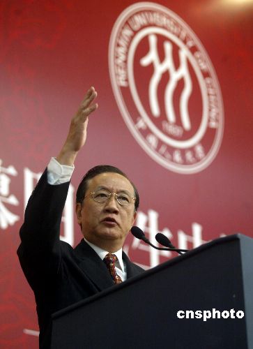 學(xué)生:今年是抗戰(zhàn)勝利60周年,你此次“民族之旅”也是以抗戰(zhàn)為基礎(chǔ)基調(diào),我們發(fā)現(xiàn)臺灣當(dāng)局做抗戰(zhàn)紀(jì)念活動是刻意淡化,你對此有什么看法?你今天來到抗日戰(zhàn)爭烽火中建立的人民大學(xué),您也是棄醫(yī)從政,我想問您,對我們還有什么更多的期待?