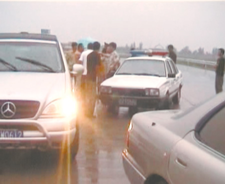 “凌志”趕到后,幾分鐘后一輛牌照為京FW0612的奔馳吉普又風(fēng)馳電掣地趕到了高坎站,跳下來(lái)四五個(gè)大漢。這時(shí)整個(gè)收費(fèi)站一片混亂,并出現(xiàn)了交通堵塞。