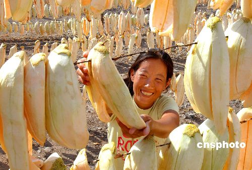 7月11日,新疆吐魯番地區(qū)鄯善縣魯克沁鎮(zhèn)沙坎村的農(nóng)民在晾曬瓜干。素有“哈密瓜之鄉(xiāng)”美稱的鄯善縣,今年哈密瓜獲得大豐收,農(nóng)民們抓緊時(shí)間晾曬瓜干。作者:劉健
