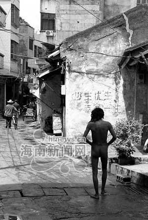 7月4日上午11點(diǎn)20分,記者采訪路過?谑腥齺喗,剛走到博愛街道辦三亞居委會(huì)門口,就聽到不遠(yuǎn)處傳出一聲女子的尖叫。記者循聲望去,只見一名年輕女子手上拿把傘,驚慌地從小巷跑出來。在她的身后,緊跟著一名赤身裸體的男人,披著篷亂的長發(fā)。見女子跑到人多的地方,追她的男子沒有跟出來,而是轉(zhuǎn)身朝三亞下街方向走去。記者正欲報(bào)警,請(qǐng)警方來控制追女人的赤裸瘋子,對(duì)方已跑得沒了影。