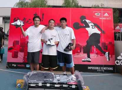 中新網(wǎng)7月25日電 7月24日下午,北京奧體中心室外籃球場(chǎng),2005阿迪達(dá)斯街球營(yíng)第一周北京地區(qū)周冠軍新鮮出爐。“半噸”隊(duì)以2380的周積分贏得了這一榮譽(yù),并獲得價(jià)值10,000元人民幣的阿迪達(dá)斯運(yùn)動(dòng)裝備。更令人羨慕的是,該隊(duì)將與第二、第三周的周冠軍一起,爭(zhēng)奪街球營(yíng)唯一的“麥蒂隊(duì)”資格。而最后的勝出者,將于代表北京街球少年,與8月底來(lái)訪北京的麥蒂進(jìn)行面對(duì)面的對(duì)抗。