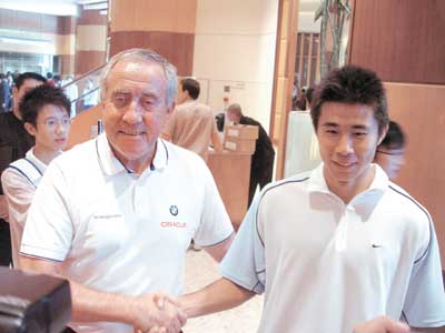 前天,董方卓在媒體面前公開表示“一定要找機(jī)會給克勞琛當(dāng)面道歉”,昨天這個機(jī)會就降臨在董方卓的面前。由弗格森牽線,昨天上午10時,克勞琛又來到曼聯(lián)下榻的嘉里中心飯店,并且直接到了弗格森的房間跟董方卓見了面。