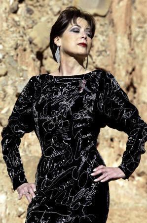 | 玻利維亞服裝設(shè)計(jì)師帕提諾(Beatriz Canedo Patino)7月26日在拉巴斯親自穿著作品“好萊塢涂鴉裝”展示,衣服上有她與全球近400位名女人的簽名。這件禮服在24年前制作,用來(lái)呼吁各國(guó)女性團(tuán)結(jié)對(duì)抗愛(ài)滋病。衣服上用白金與水晶珠煉繡著穿過(guò)這件衣服的女士姓名,包括德蕾莎修女、小野洋子與凱薩琳赫本(Katharine Hepburn)等。帕提諾是最后一個(gè)在這件衣服上加上簽名的人。她因?yàn)閻?ài)用Alpaca羊毛,自稱(chēng)Alpaca皇后。這件衣服將在最后一次全球巡回展后拍賣(mài),以對(duì)愛(ài)滋病防治做出最后的貢獻(xiàn)。(來(lái)源:路透/David Mercado)