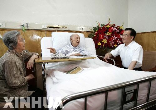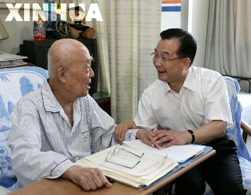 “今天,您講的我很受啟發(fā)!睍r間流逝,不知不覺間已經(jīng)是10時許。溫家寶起身告辭:“您要保重身體,黨和國家領(lǐng)導(dǎo)人都在關(guān)心您,科技界都很惦記您!