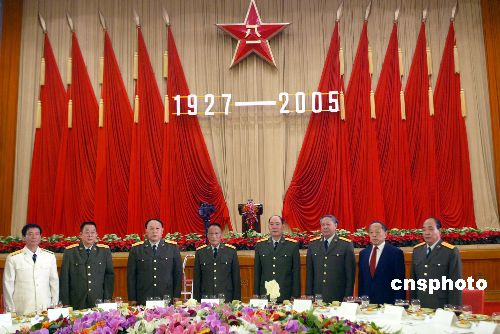 中新社北京七月三十一日電(記者陶社蘭)中國國防部今天在北京人民大會堂舉行盛大招待會,慶祝中國人民解放軍建軍七十八周年,中央軍委副主席、國務委員兼國防部長曹剛川向人民解放軍、武警部隊、預備役軍人和廣大民兵致以節(jié)日祝賀。