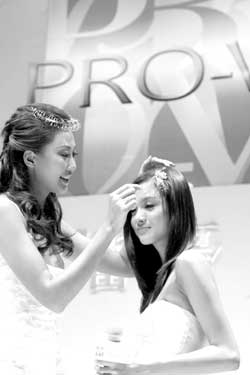 中新網(wǎng)8月2日電 北京娛樂信報消息,7月29日,在國內某知名洗護發(fā)品牌的新品發(fā)布會上,名模謝東娜率領著模特春曉、戴小奕、王瀟、張?zhí)氐仍诰┭堇[了一場精彩的秀發(fā)搭配美鉆的發(fā)型秀。而受傷的臺灣名模林志玲也透過大屏幕送上問候。