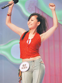 張靚穎目前是超女的熱門人物,她的外貌也最受推崇,和葉一茜一樣,兩人都是長發(fā)披肩的標(biāo)準(zhǔn)美女,笑容也很甜美。
