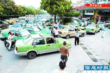 隨后記者來到了林和西橫路泛城加油站。但負(fù)責(zé)人和普通工人都拒絕記者采訪,說沒有上頭的通知,他們不會(huì)接受任何采訪。不過記者最后通過出租車司機(jī)了解到,此加油站90#油已不多。果然,5點(diǎn)30分左右,記者得到確切消息,此加油站90#油售罄。在黃埔大道員村加油站、農(nóng)林下路加油站、先烈中路BP加油站、敦和路敦和加油站都無油可加;黃埔大道東郊加油站和珠江中穗加油站只有97#油可加,一些出租車只得忍痛加97#油了;中山大道東安加油站、工業(yè)大道新裕加油站只有93#油可加;新港西路銀海加油站只有90#油出售,但已吃緊;花地大道花地灣加油站93#油已售罄,90#、97#油也所剩不多。