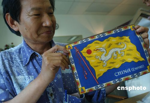 旅美華人美術教授喬文安七月底展示他收藏的美國珍貴煙標,它是一百多年前美國煙草公司特意為出口中國的精品而設計,專用絲織的白龍黃旗下注明:“中國皇家”,為中美經(jīng)貿(mào)歷史的證物。作者:賈國榮