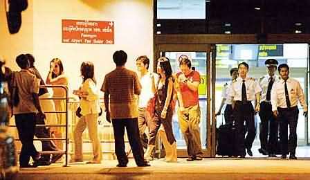 現(xiàn)場所見,王菲邊走邊把墨鏡移到頭上,神情疲累,一步出機場大門已急不及待煲煙提神,至于表情輕松的李亞鵬則全程戴上太陽眼鏡,同樣點起香煙抽起來,然后二人便站在街上等候尾隨友人推出行李車,其間王菲難掩倦意,頻頻打呵欠。眾人其后登上早已在場等候的車子,行李則存放在另一小型貨車上,一切打點妥當后,司機便駕車直駛Banyan Tree五星級酒店。