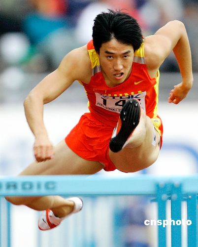 8月10日,在芬蘭赫爾辛基舉行的田徑世錦賽男子110米欄第一輪第二組的比賽中,中國奧運冠軍劉翔以13秒73獲小組第一,“殺”入半決賽。作者:Ic/cnsphoto