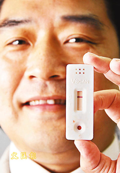 蔣凌輝說,這套測試器的優(yōu)點是快速,可自行在家中進行測試,只需將手指的血液滴進檢驗器上,15分鐘后會顯示結(jié)果,避免患者求診時感到尷尬或被歧視的疑難。