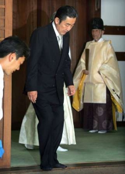 同一天,日本內(nèi)閣官員經(jīng)濟(jì)產(chǎn)業(yè)大臣中川昭一也參拜了靖國神社。