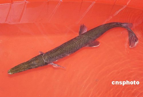 近日,浙江省溫嶺市橫峰街道祝家洋村村民鄭寶福在自家的黃鱔籠里捉到一條“怪魚”,此魚背部有鱗,但沒有魚鰭,嘴像鴨嘴,體型像蛇,眾人看后紛紛稱奇,曾有一當?shù)氐娜罕娫敢獬?500元的價錢想買走此魚,但被鄭寶福婉言謝絕了。作者:江文輝