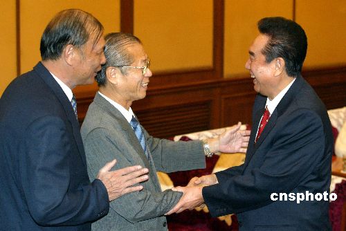 八月十六日,國務院臺灣事務辦公室主任陳云林在北京會見兩岸客貨運包機促進訪問團一行。作者:廖文靜