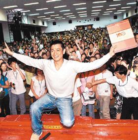 臺(tái)下也有不少學(xué)生爭(zhēng)相問(wèn)天王成功之道和人生經(jīng)驗(yàn),這些千奇百怪的問(wèn)題把華仔逗得哈哈大笑。