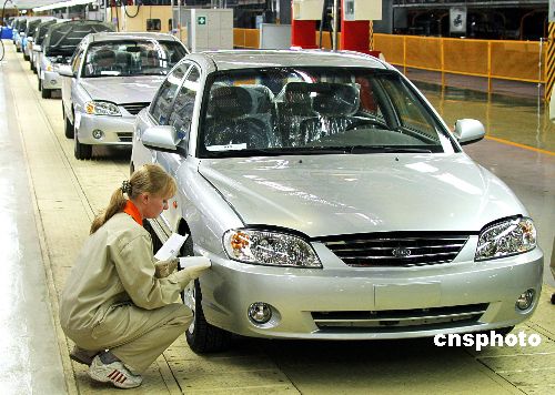| 8月22日,韓國起亞在俄羅斯的一處工廠內(nèi),工人正在做產(chǎn)品檢驗。韓國起亞Spectra汽車已經(jīng)開始在俄羅斯批量生產(chǎn)。隨著俄羅斯經(jīng)濟(jì)的逐步提升,汽車需求量也大幅增加,全球各大汽車廠商都在加緊進(jìn)軍俄羅斯,競爭日益激烈。作者:Ic/cnsphoto