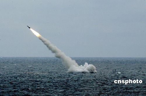 11時29分,隨著“砰”的一陣悶響,導(dǎo)彈順利發(fā)射出艇。此時,導(dǎo)彈發(fā)射瞬間產(chǎn)生的強大空氣回流,使記者的耳鼓里明顯地感覺到一股強勁的壓力。