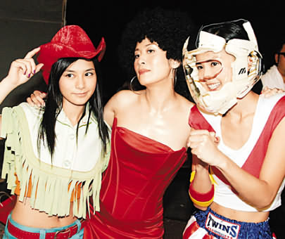 不過論最搶鏡的是,就是原本扮演嚴肅古板女教師卻突然變成惹火女郎的吳君如,她那火紅色低胸裝性感造型令工作人員為之贊嘆,雖然阿Sa和阿嬌都雙雙露腰,亦難及君如搶鏡。后來二人更馬上拿起相機要與君如合照,十分搞笑。