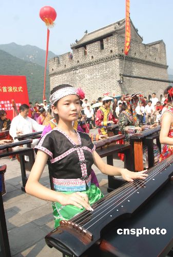八月二十六日,居庸關(guān)長城琴聲悠揚,身著56個民族盛裝的古琴演奏者,在天下第一雄關(guān)用鐫刻著56個民族歷史文化和風情習俗的56把極品古琴演奏了《梅花三弄》、《流水》、《關(guān)山月》《歌唱祖國》等千古名曲和時代新歌,慶祝中華人民共和國建國56周年。張勤