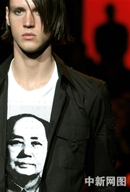 1月17日,在意大利米蘭舉行的2006/07秋冬男裝發(fā)布會上,一名模特在展示英國設計師John Richmond的作品。